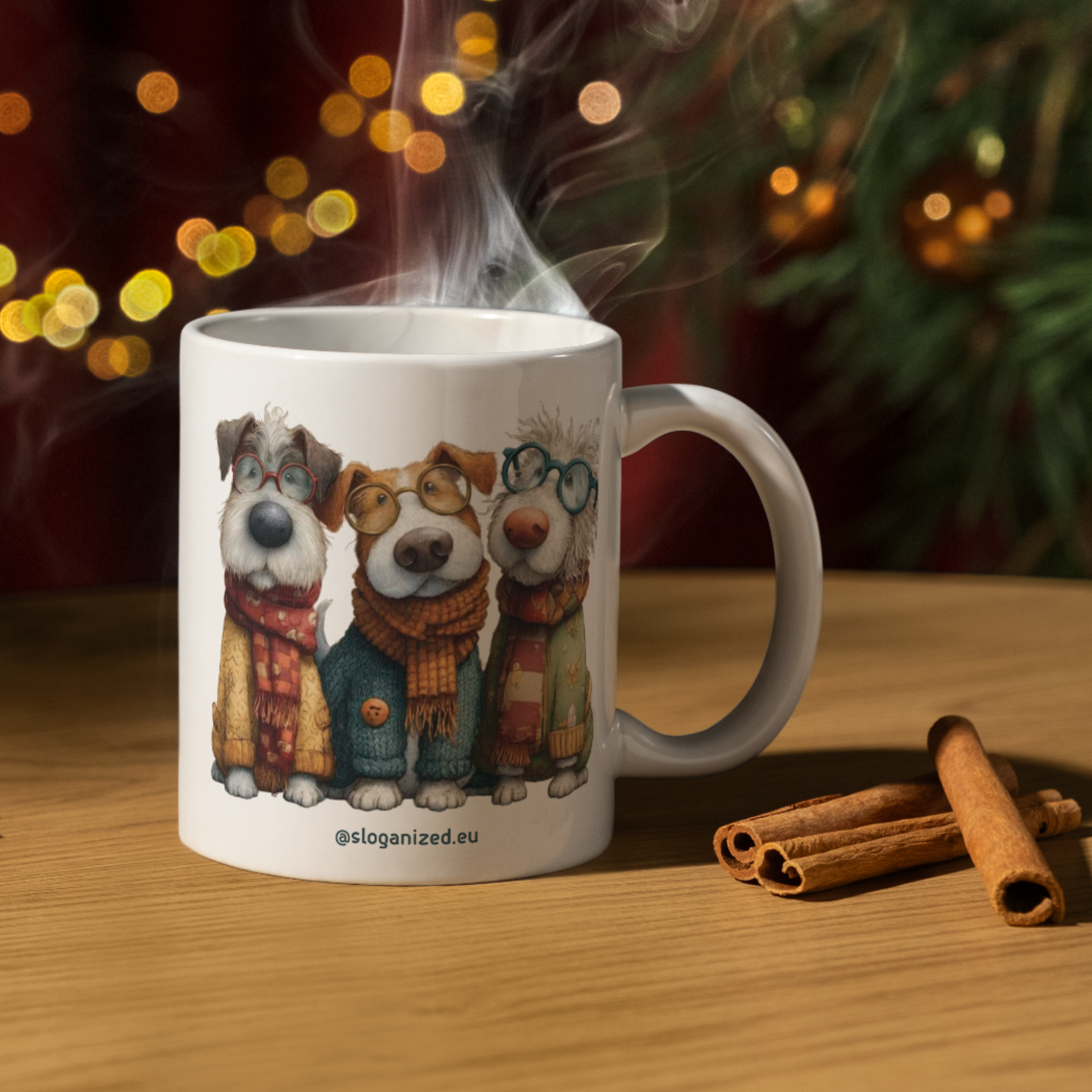 Ζέστανε τις γιορτινές σου μέρες με αυτή τη χαριτωμένη χριστουγεννιάτικη κούπα που απεικονίζει τρείς αξιαγάπητους σκύλους ντυμένους με χειμερινά ρούχα κασκόλ και γυαλιά!Τέλεια επιλογή για όσους αγαπούν τα κατοικίδια , το cozy style και τις πρωτότυπες κούπες.